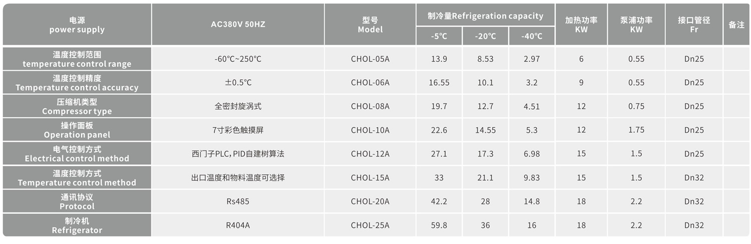 冷媒可選R22、R407C、R404A、R134A、R410A等